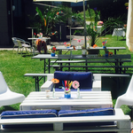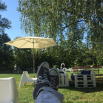 . . . auf der Wiese kann man lässig entspannen, die Kinder immer im Blick. Die kochen und matscheln nämlich in der Spielküche und lassen Dich verschnaufen.